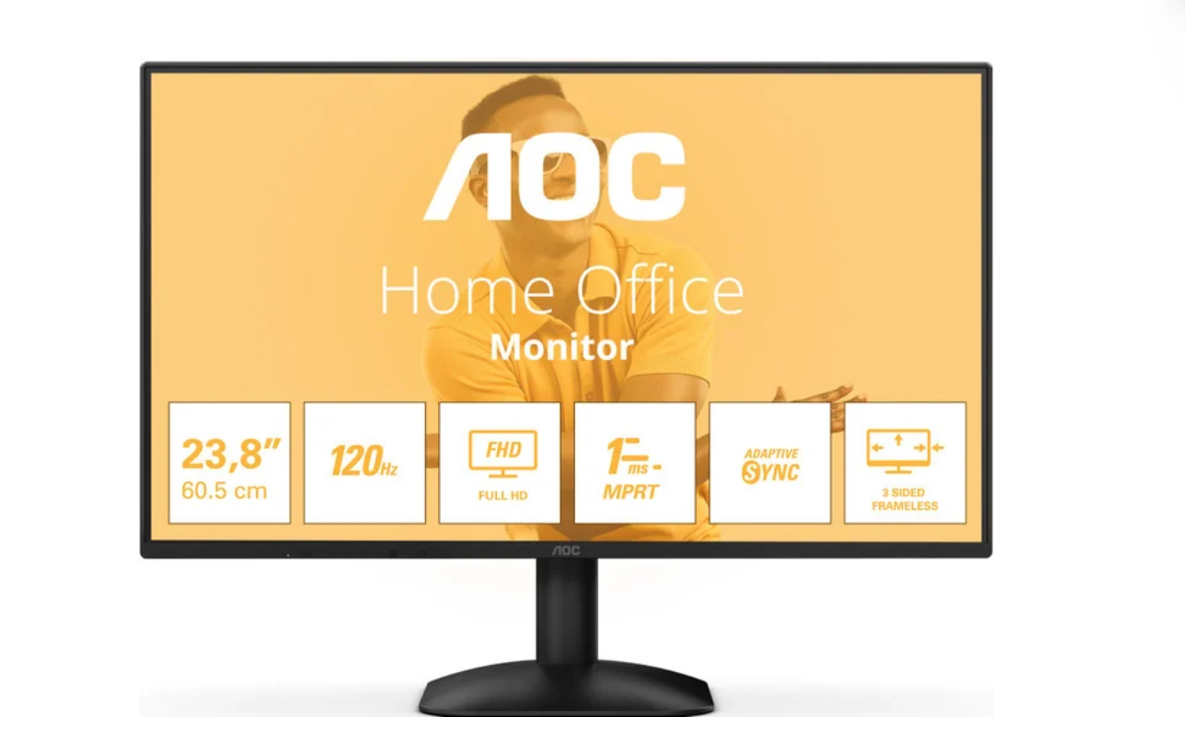 23.8", 1920x1080, 16:9, IPS, 120 Гц, глубина 8 бит, яркость 300 нит, HDMI+D-Sub (VGA)