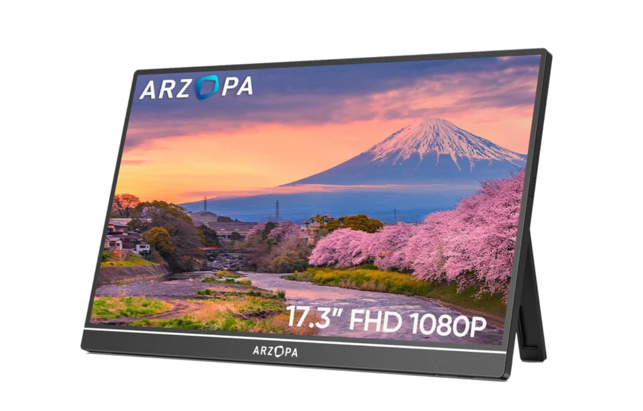 17.3", 1920x1080, 16:9, IPS, 60 Гц, глубина 8 бит, яркость 300 нит, динамики, USB Type-C+mini HDMI