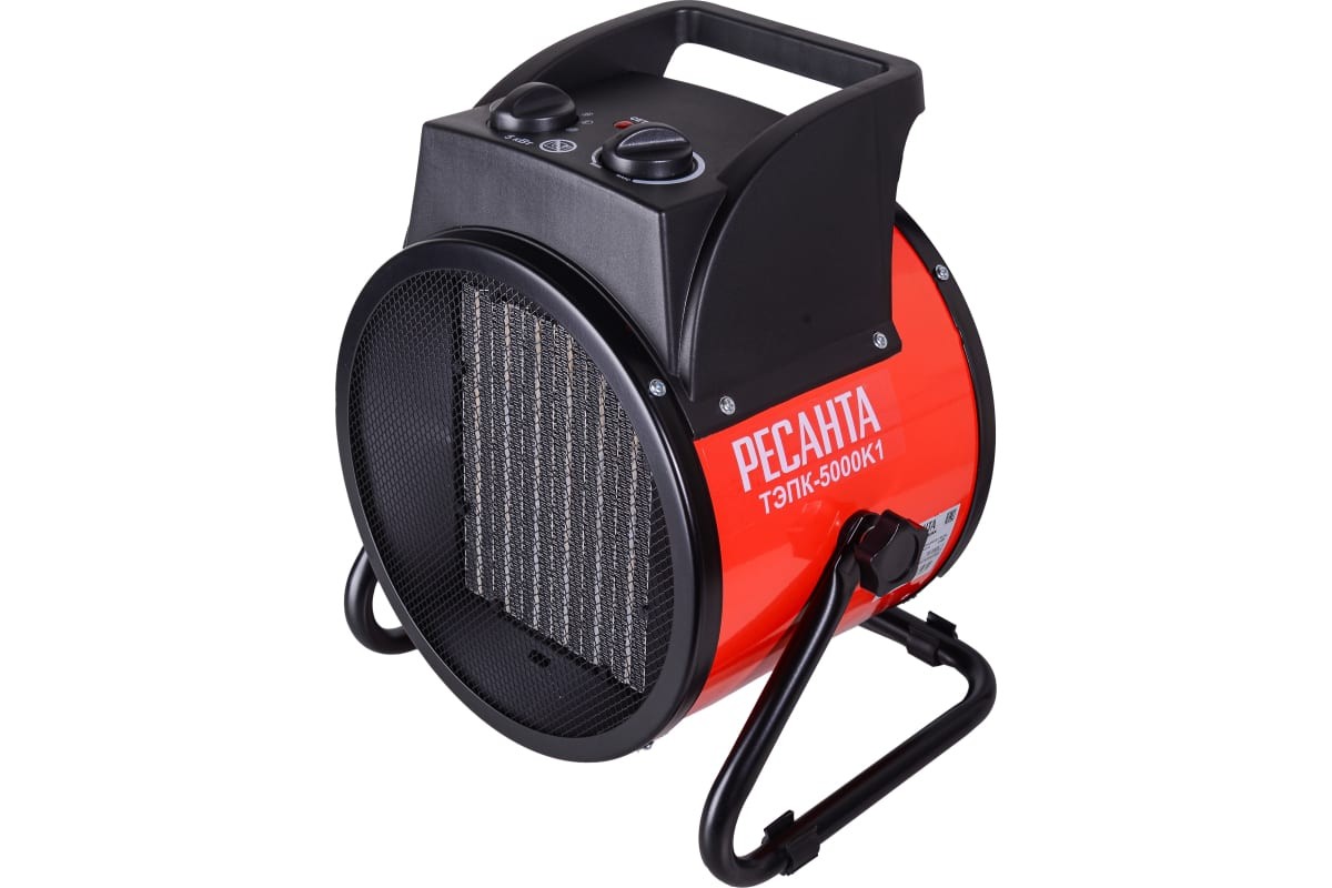 Тепловая пушка Ресанта ТЭПК-5000К1 67/1/50, электрическая, управление механическое, тепловая мощность 5 кВт, площадь обогрева 50 м2