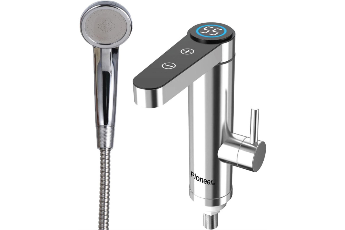 Проточный водонагреватель - смеситель С ДУШЕМ. Цифровой дисплей; Постоянный контроль температуры 30–55 °C; Корпус и ручка из нержавеющей стали; Напряжение питания: 220–240 В; Частота питания: : 50 Гц (60 Гц); Номинальная мощность: 3–3,6 кВт; Расход горячей воды: 2–2,5 л/мин; Рабочее давление: 0,04–0,6 МПа; Температура горячей воды: 30–60 °C; Степень водонепроницаемости: IPx4; Скорость потока воды: от 1 до 4 объемов в час; Длина кабеля питания: 1,5 метра