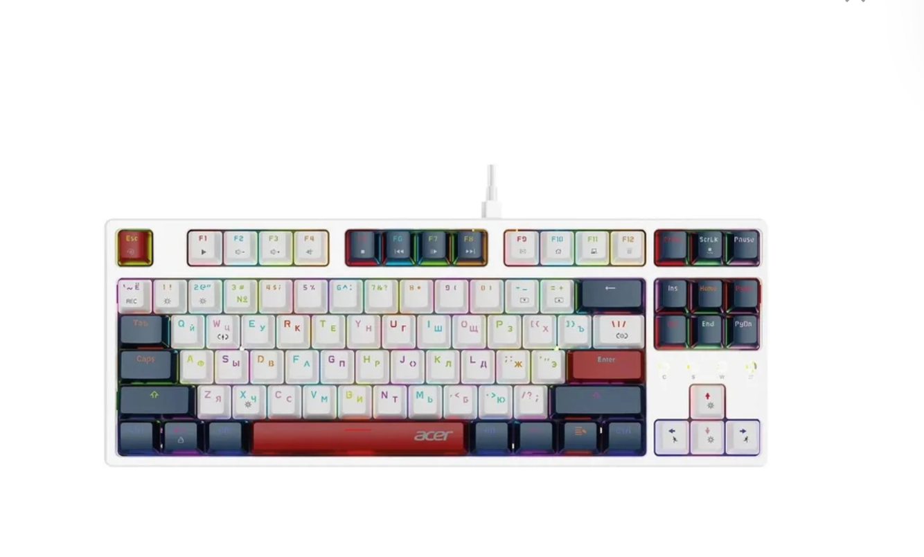 игровая для ПК, механическая, ход линейные, пластик, интерфейс подключения - USB-A, подсветка, кириллица: да, цвет черный/белый/красный
