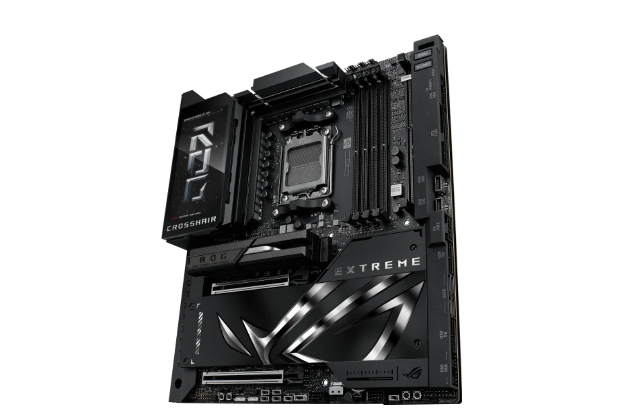 eATX, чипсет AMD X870E, память 4xDDR5, слоты: 2xPCIe x16 5.0, 5xM.2, 802.11be (Wi-Fi 7)+Bluetooth 5.4, 20+2+2 фаз питания