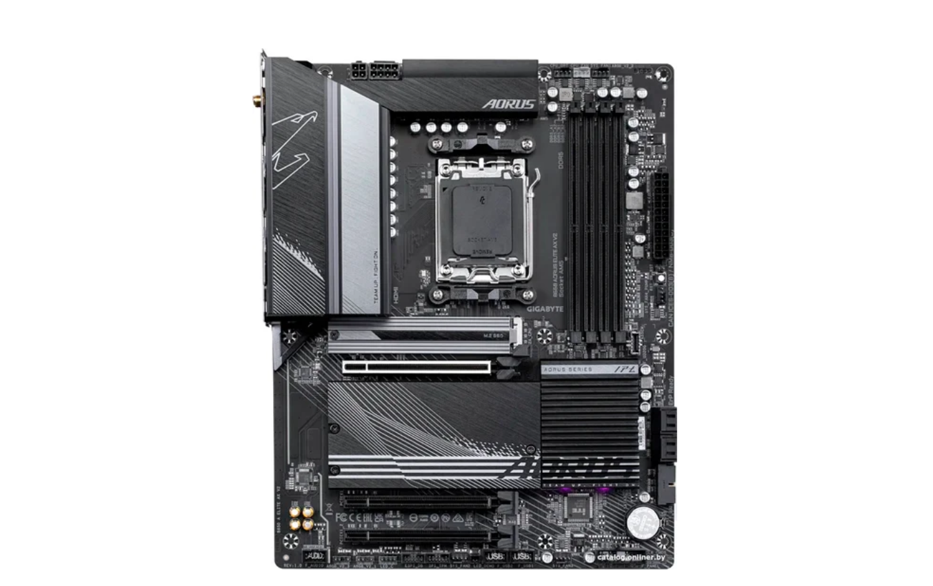ATX, сокет AMD AM5, чипсет AMD B650, память 4xDDR5 до 8000 МГц, слоты: 3xPCIe x16 4.0, 3xM.2, 802.11ax (Wi-Fi 6E)+Bluetooth 5.3, 12+2+2 фаз питания