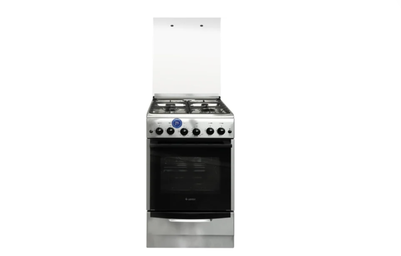 газовая панель + газовый духовой шкаф, газ-контроль конфорок, поверхность: эмалированная сталь, крышка из закалённого стекла, энергопотребление A, управление механическое, таймер механический, размеры (ШхГхВ): 50x58.5x85 см, цвет нержавеющая сталь