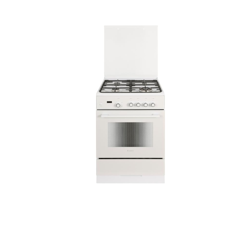 Габариты ШхГхВ, см: 60х60х85; Тип подключения: Газовый; Объем духового шкафа, л: 52; Количество зон приготовления: 4; Цвет: Белый; Материал варочной поверхности: Эмаль; Материал решеток варочной поверхности: Чугун; Материал решеток варочной поверхности: Чугун; Двухзонная горелка варочной поверхности; Крышка плиты: Стеклянная; Газ-контроль горелок стола; Газ-контроль духового шкафа; Электророзжиг горелок стола: Розжиг встроен в ручки; Электророзжиг духового шкафа: Розжиг встроен в ручки; Таймер: Сенсорный; Тип направляющих духового шкафа: Съемные проволочные; Тип очистки: Гидролизная; Внутреннее покрытие духового шкафа: Эмаль легкой очистки SMART CERAMIC; Количество стекол в дверце духового шкафа: 2; Телескопические полки; Ящик для посуды и принадлежностей: Выдвижной ящик; Внутреннее освещение духового шкафа: Одинарное; Контроль температуры духового шкафа: Термостат; Гриль; Нижний нагрев; Горелка гриль, Вт: 1900; Диапазон номинального напряжения сети, В: 220-230