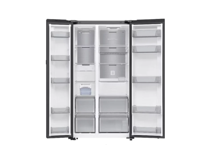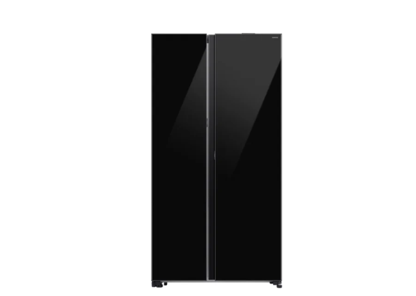 отдельностоящий, полный No Frost, сенсорное управление, класс A+, полезный объём: 646 л (417 + 229 л), инверторный компрессор, электропривод дверей, выдвижной/подвесной контейнер, лоток для яиц, отделка: стекло, 91.2x71.6x178.6 см, черный