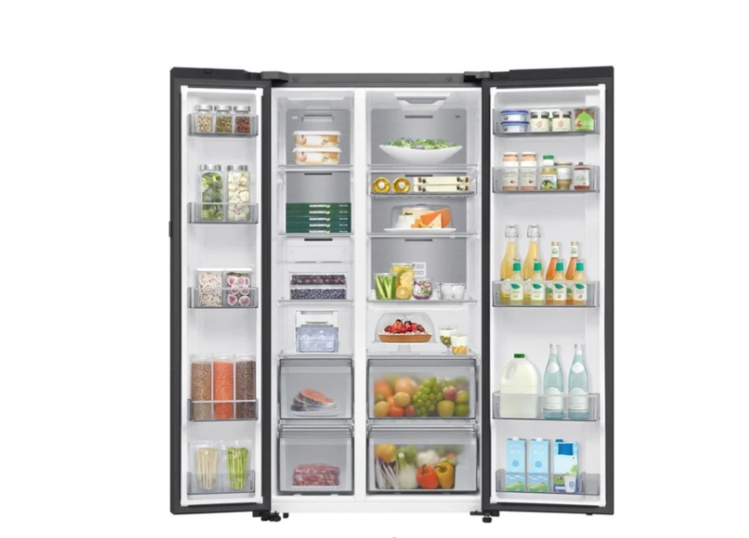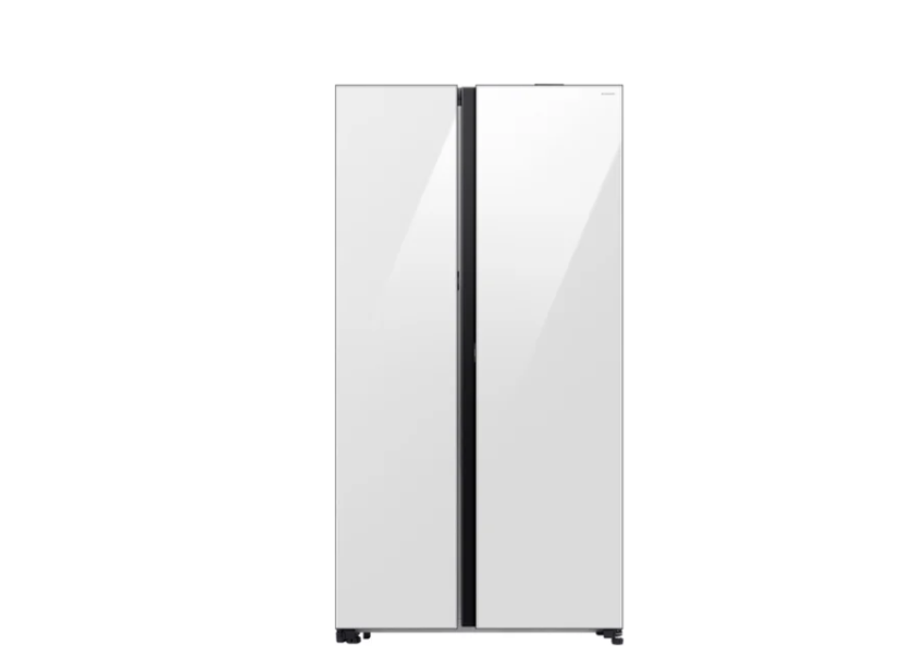 отдельностоящий, полный No Frost, сенсорное управление, класс A+, полезный объём: 646 л (417 + 229 л), инверторный компрессор, электропривод дверей, выдвижной/подвесной контейнер, лоток для яиц, отделка: стекло, 91.2x71.6x178.6 см, белый