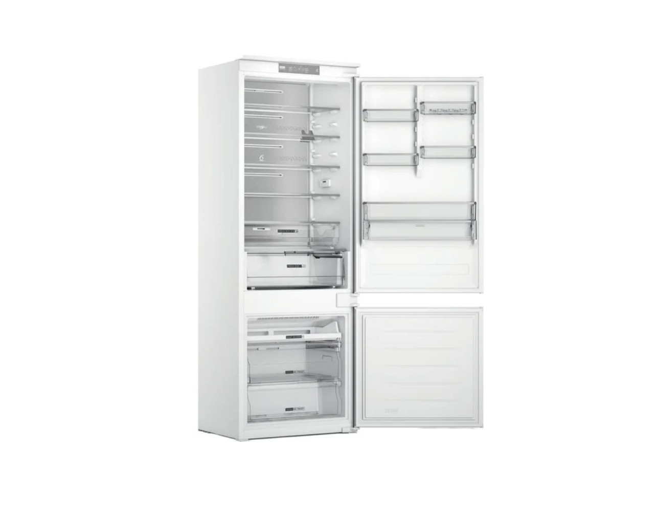 встраиваемый, скользящие направляющие, полный No Frost, электронное управление, полезный объём: 394 л (295 + 99 л), инверторный компрессор, зона свежести, перенавешиваемые двери, подставка-лоток для бутылок, лоток для яиц, 69x55.1x193.5 см, белый