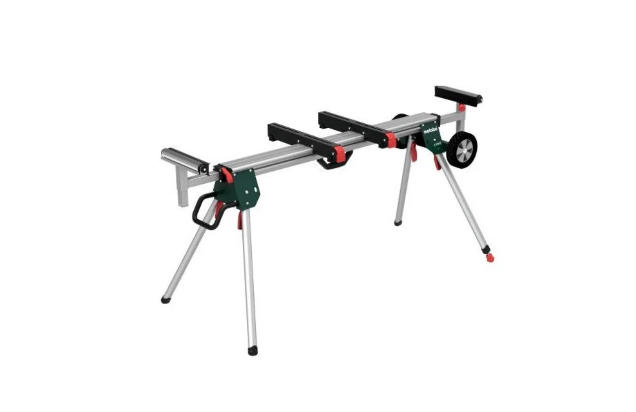 Легкая и прочная подставка для торцовочных пил, с колесиками для возможности перемещения также вместе с установленной пилой.