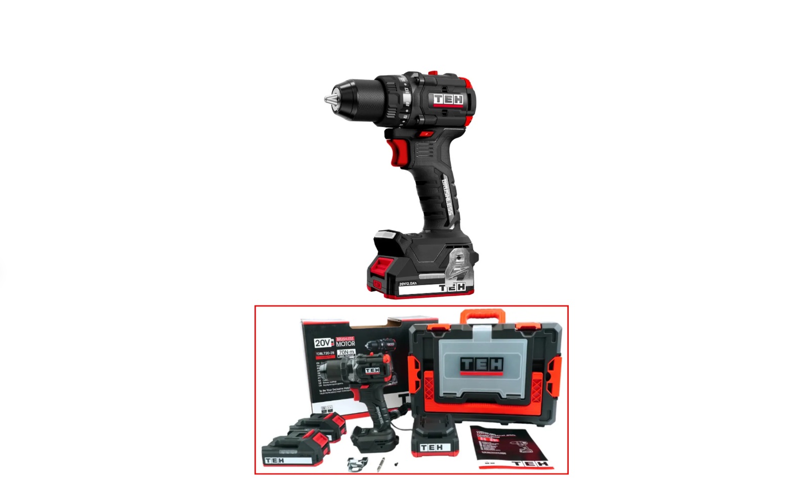 быстрозажимной патрон, 2 скорости; бесщет.двигатель, электр.тормоз двигателя; реверс, подсветка, рег-ка оборотов