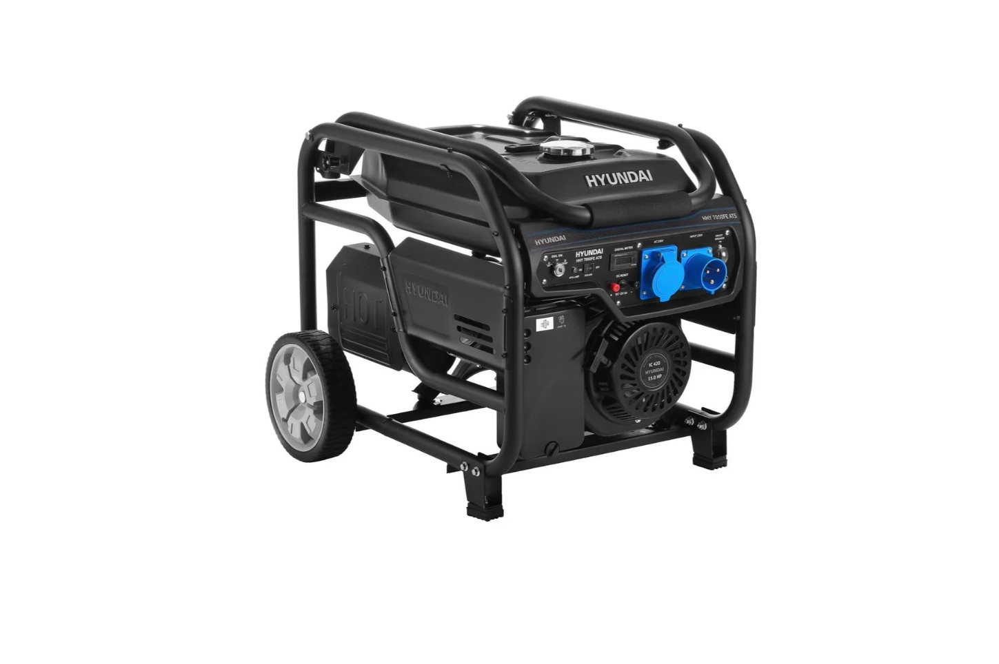 4-тактный двигатель мощностью 13 л.с. (максимальная — 5500 Вт) и объемом 459 cм³ при полном баке (25 л) рассчитан на непрерывную работу в течение 8 ч. При полной нагрузке расход топлива составляет 3,8 л/ч. Двигатель имеет воздушное охлаждение и ручной и электрический запуск. Встроен синхронный альтератор с обмоткой из меди.