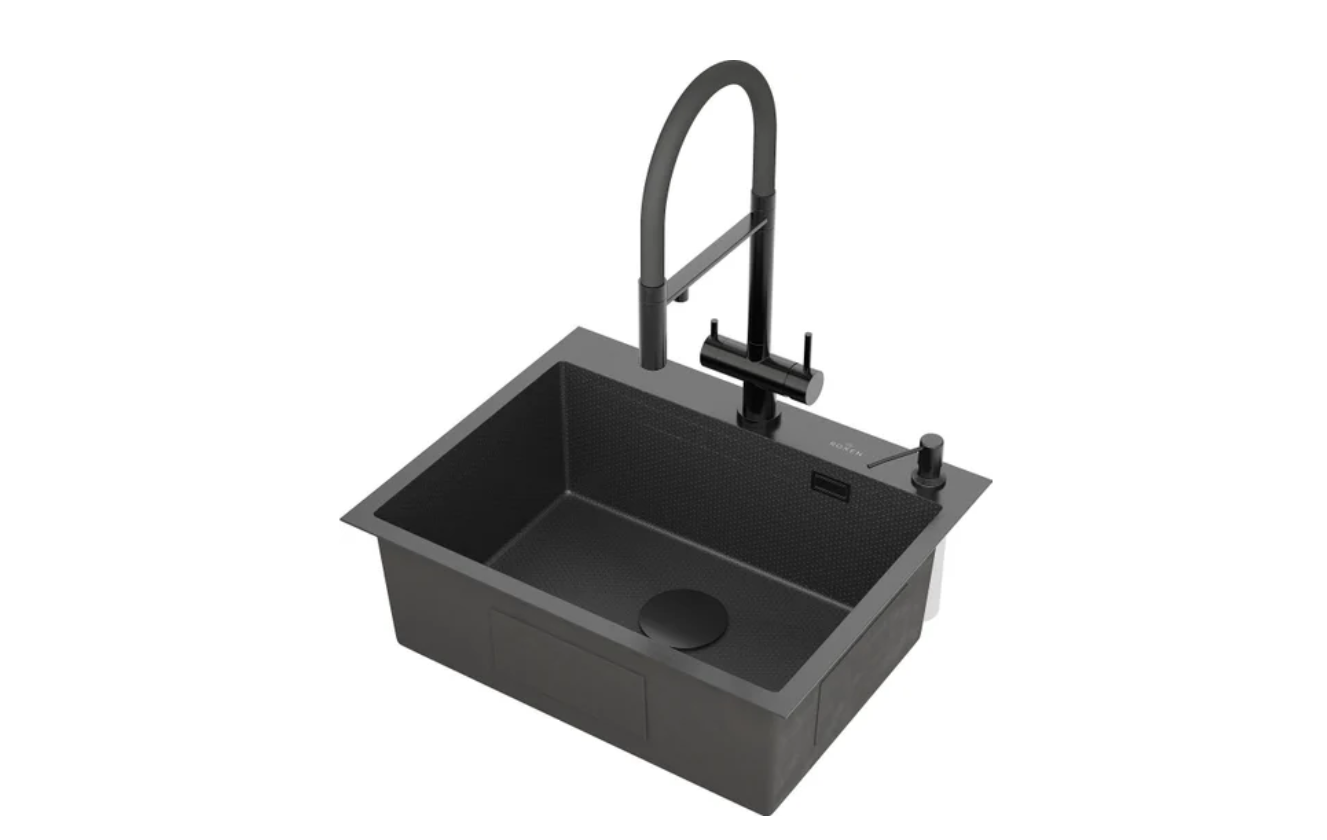 Комплектация: вентиль, дозатор жидкого мыла, сифон, крепления