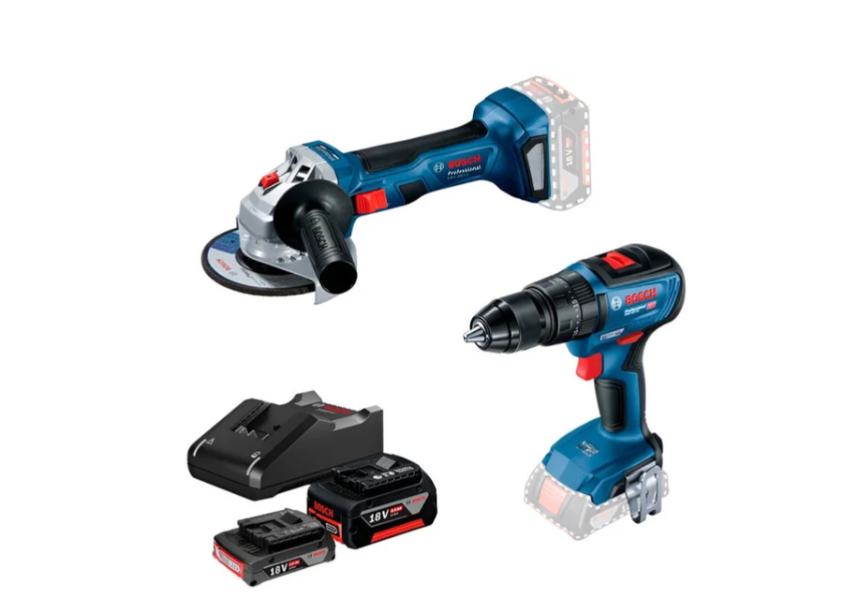 Состав набора дрель-шуруповерт, угловая шлифовальная машина