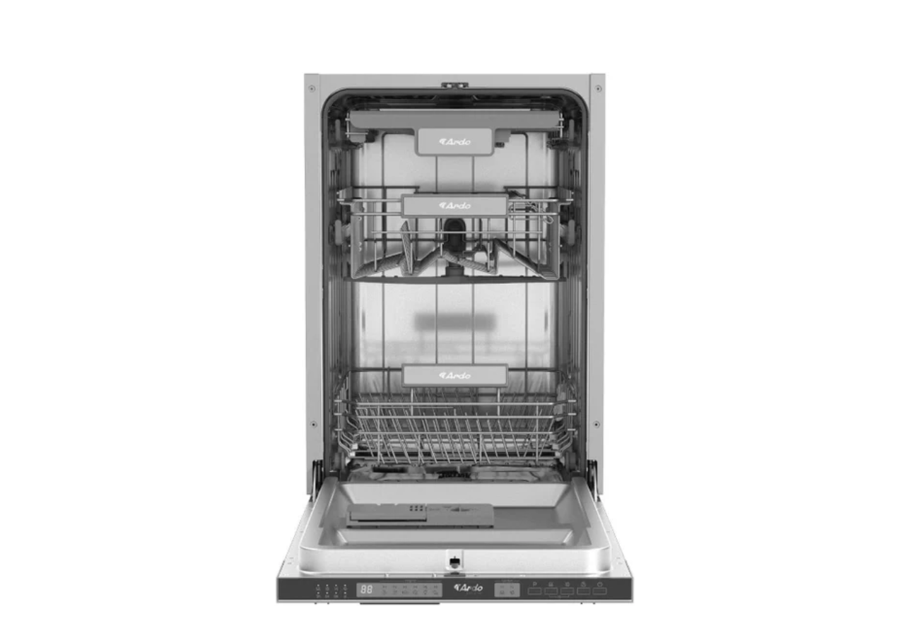загрузка на 10 комплектов посуды, сенсорное управление, 6 программ, 44.8x55x82 см, черный цвет, сушка: стандартная (конденсация), индикация на полу: нет