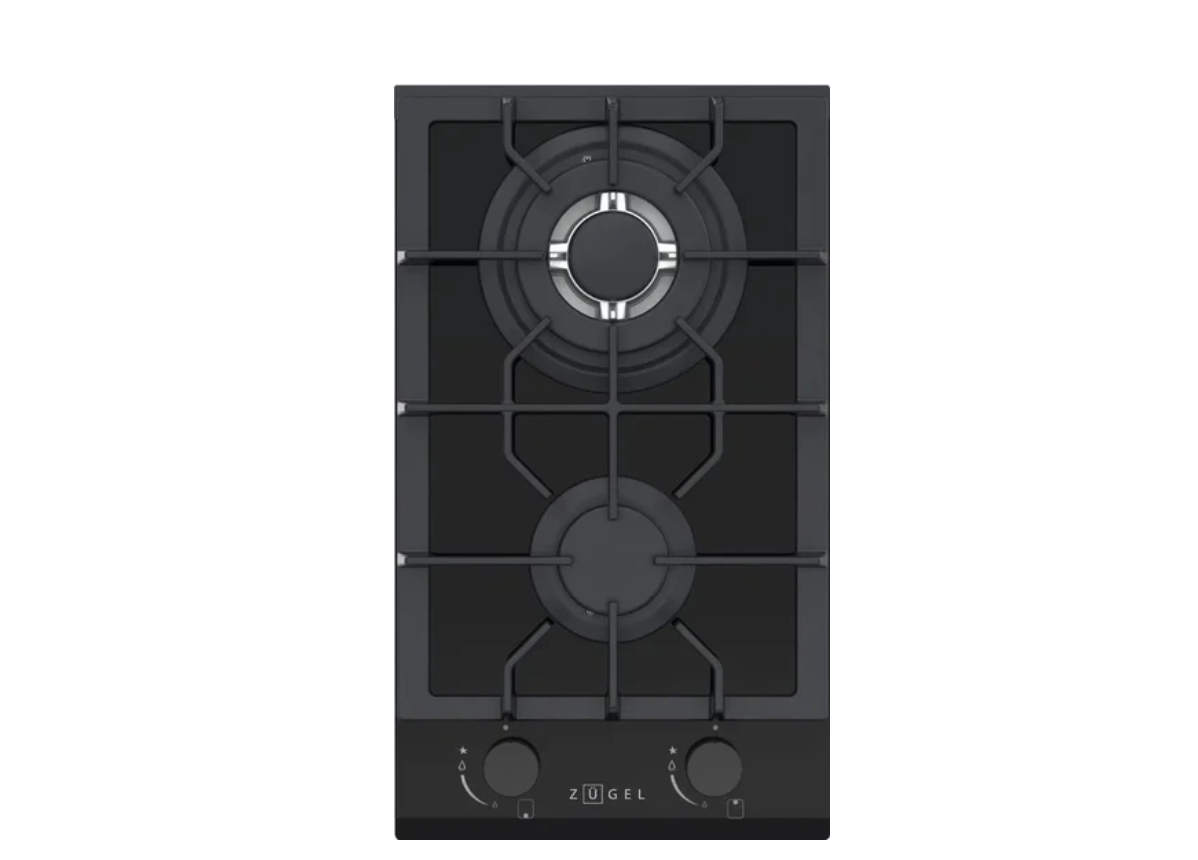 газовая на 2 конфорки, закаленное стекло, мощность: 5200 Вт, автоматический электроподжиг, газ-контроль, решетки: чугун, независимая установка, размеры (ШхГ): 29.4x51 см