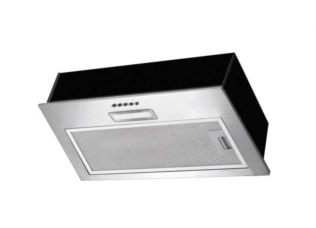 конструкция скрытая, монтаж для встраивания, ширина 52.5 см, управление механическое/кнопочное, производительность мотора 500 м³/ч, цвет нержавеющая сталь