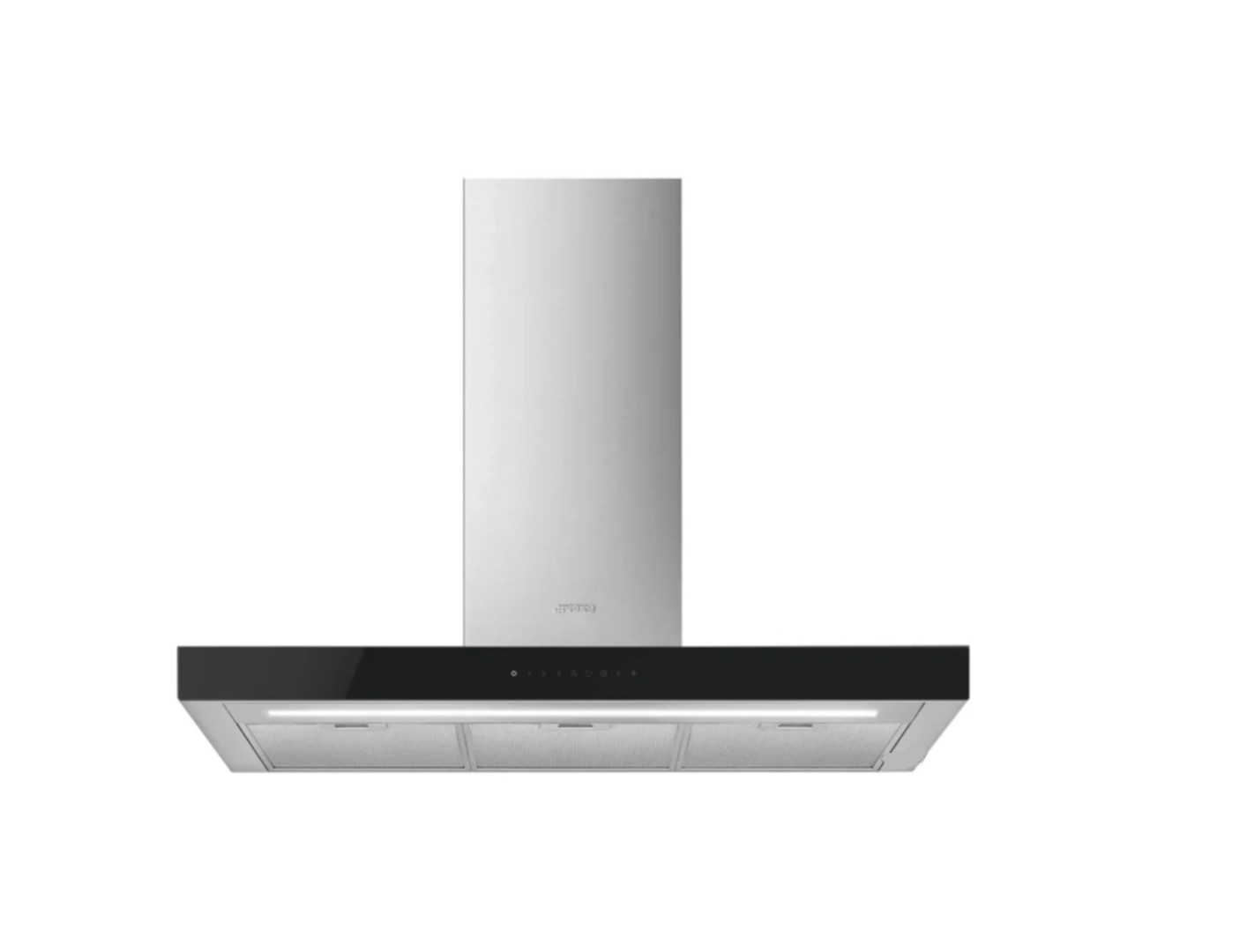 конструкция Т-образная, монтаж настенный, ширина 90 см, управление сенсорное, производительность вытяжки 453 м³/ч, цвет нержавеющая сталь/черный
