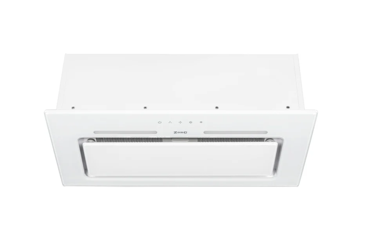 конструкция скрытая, монтаж для встраивания, ширина 59.8 см, управление сенсорное, производительность мотора 1030 м³/ч, цвет белый