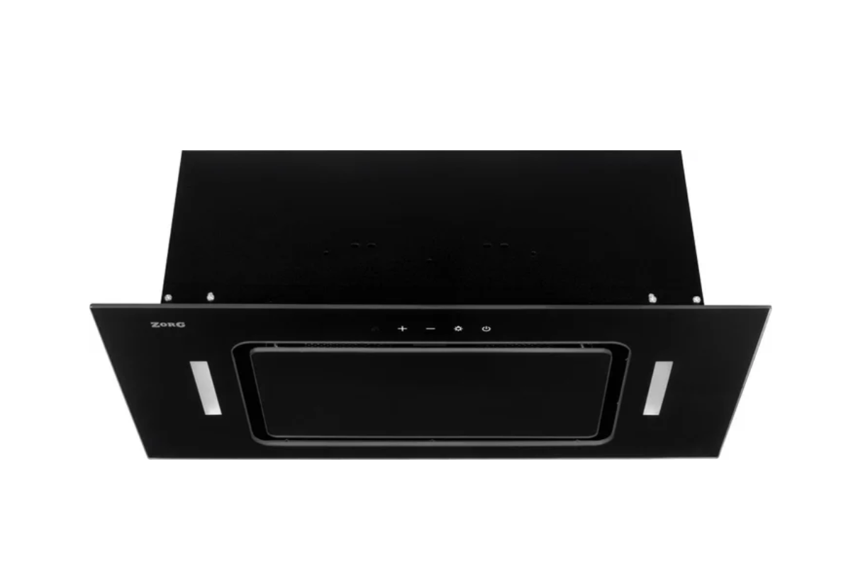конструкция скрытая, монтаж для встраивания, ширина 59.8 см, управление сенсорное, производительность мотора 1060 м³/ч, цвет черный